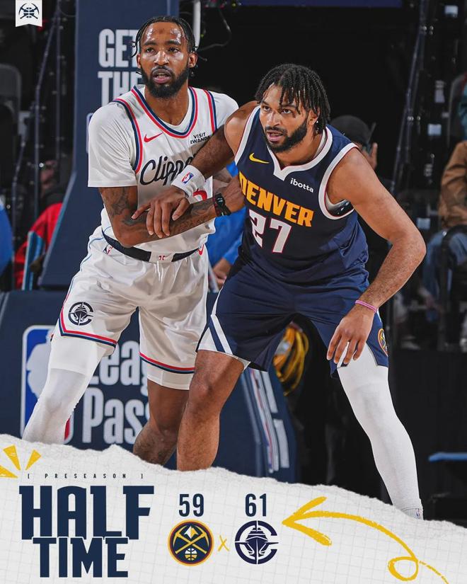 第二节后半段,快船主力回来再次领先。半场战罢,快船61-59领先2分。伦纳德17分、大洛13分、祖巴茨11分8板、哈登3分5板10助。掘金戈登16分5板、约基奇10分7板4助、沃特森9分、瓦兰6分5板。布朗和小哈达威合计3中0。
